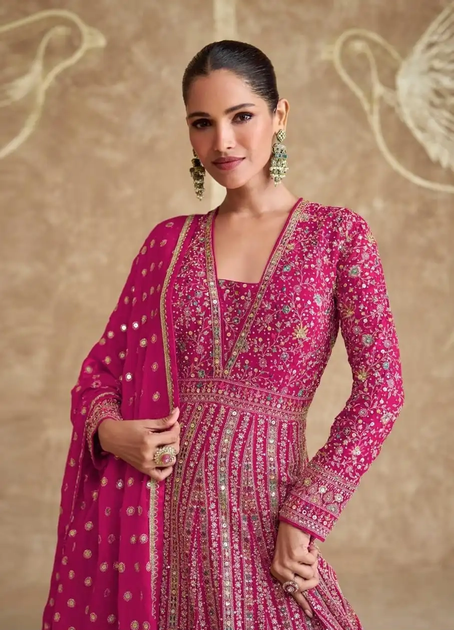 FABRIC – REAL GEROGETTE ( FULL HEAVY LOOK EMBROIDERED DRESSES WITH EMBROIDERED DUPATTA )