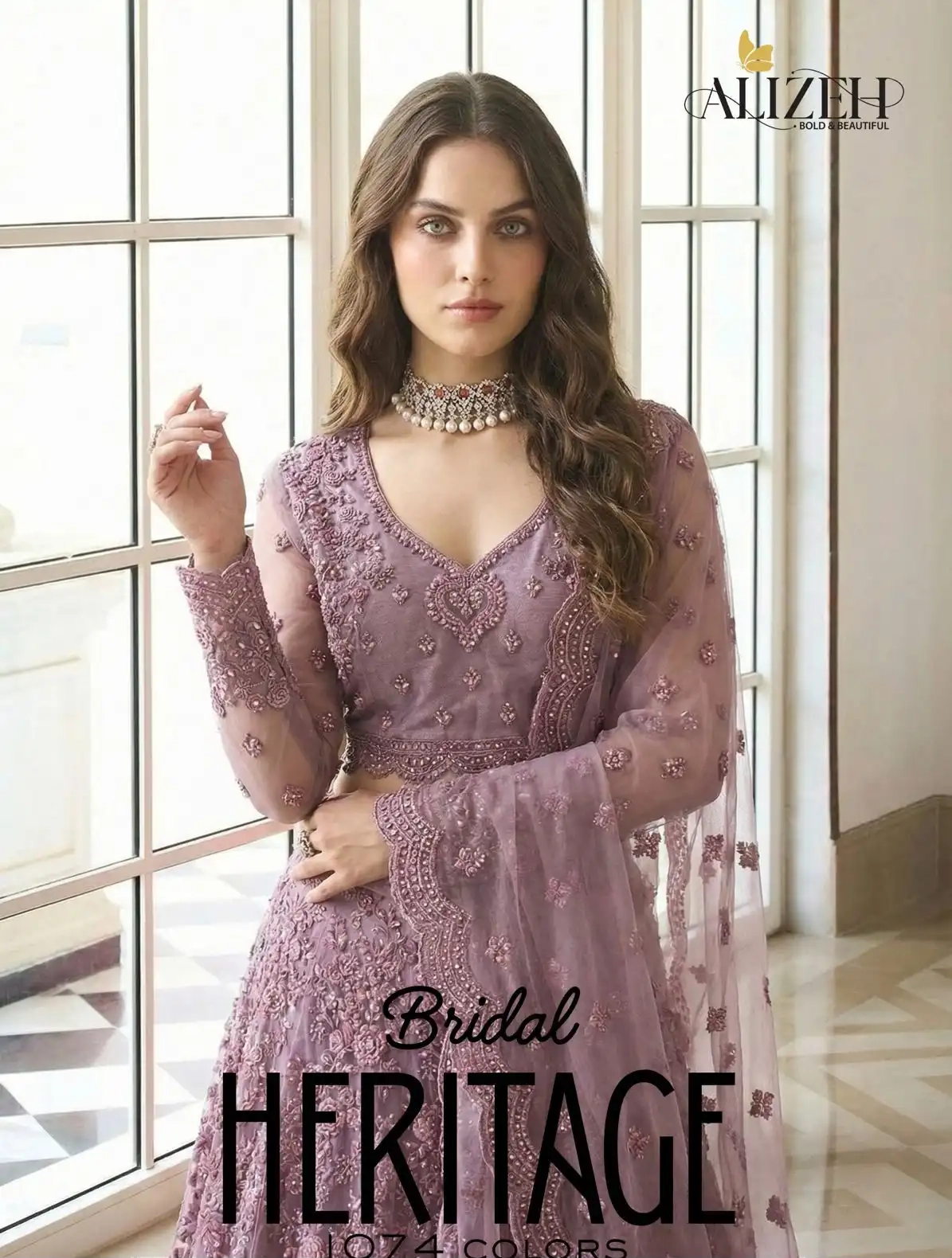 UNSTITCHED BUTTERFLY NET LEHENGA CHOLI